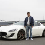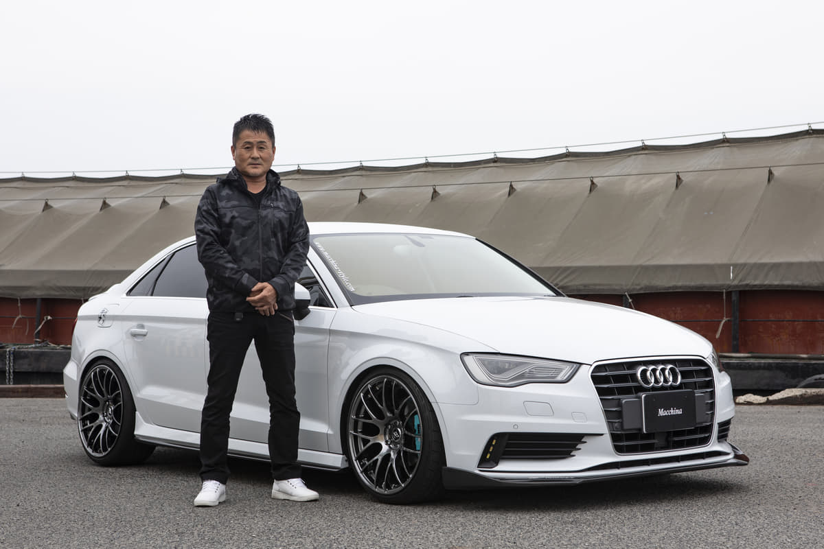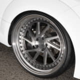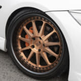 マッキナの太田代表はフェラーリで登場です。ディープな鍛造コンケーブホイールを美しくツライチに納めたシンプルな仕様ですが、ホワイトレターとともに360モデナのパフォーマンスを象徴するようなスタイルアップといえそう。マッキナのデモカーとしても今後が気になるクルマですね。