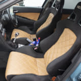 2年前から着手して完成の域に達したガンガン走れる足まわり、そして気持ちよく吹けるエンジンにとても満足そうな宮ノ原サン。汎用バーフェン、カーボンエアロでアグレッシブそのものな上に、Fブレーキはブレンボのフルキットでかためています。一方、内装は意外に落ち着いたトーンなのも特徴で、外装とのギャップでも楽しませてくれます。