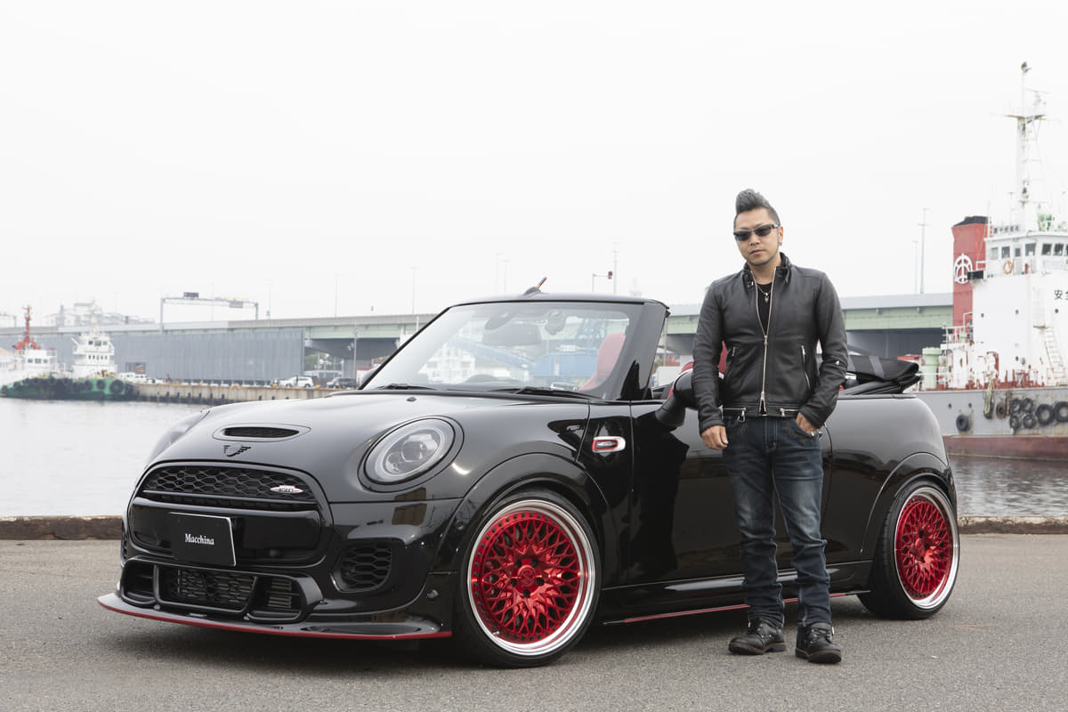 JCWのコンバーチブルというレア車で黒×赤にこだわった奥泉サン。特別色のホイール、ボトムの差し色、シート張り替えと効果的なカスタマイズになっています。そしてつぎのターゲットはなんとグラインダータトゥー。これはスゴイことになりそうです。