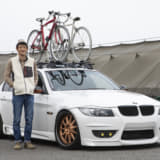 ルーフ上のロードバイクとカッパーのホイールが目を引くE90。セダンも自転車などの大物アイテムと組み合わせると一段とアクティブに見えますね。インパネなどの水圧転写がマーブル柄というのもおもしろいです。けれども、もうすぐ廃車するそう。ちょっとさびしいけど次のクルマに期待したくなりますね。