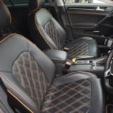 落ち着きと端正な雰囲気の中に、ちょこっとやんちゃなスパイスを効かせたゴルフ。レースチップまで入ってるんですよね。ポイントになっているBBSはなんと奥様からのバースデープレゼントだそうで、うらやましい限りです。オレンジの差し色やレムスマフラーテールの溶接もこだわりポイント。とくにステアリングはステッチだけオレンジにするという凝りようです。
