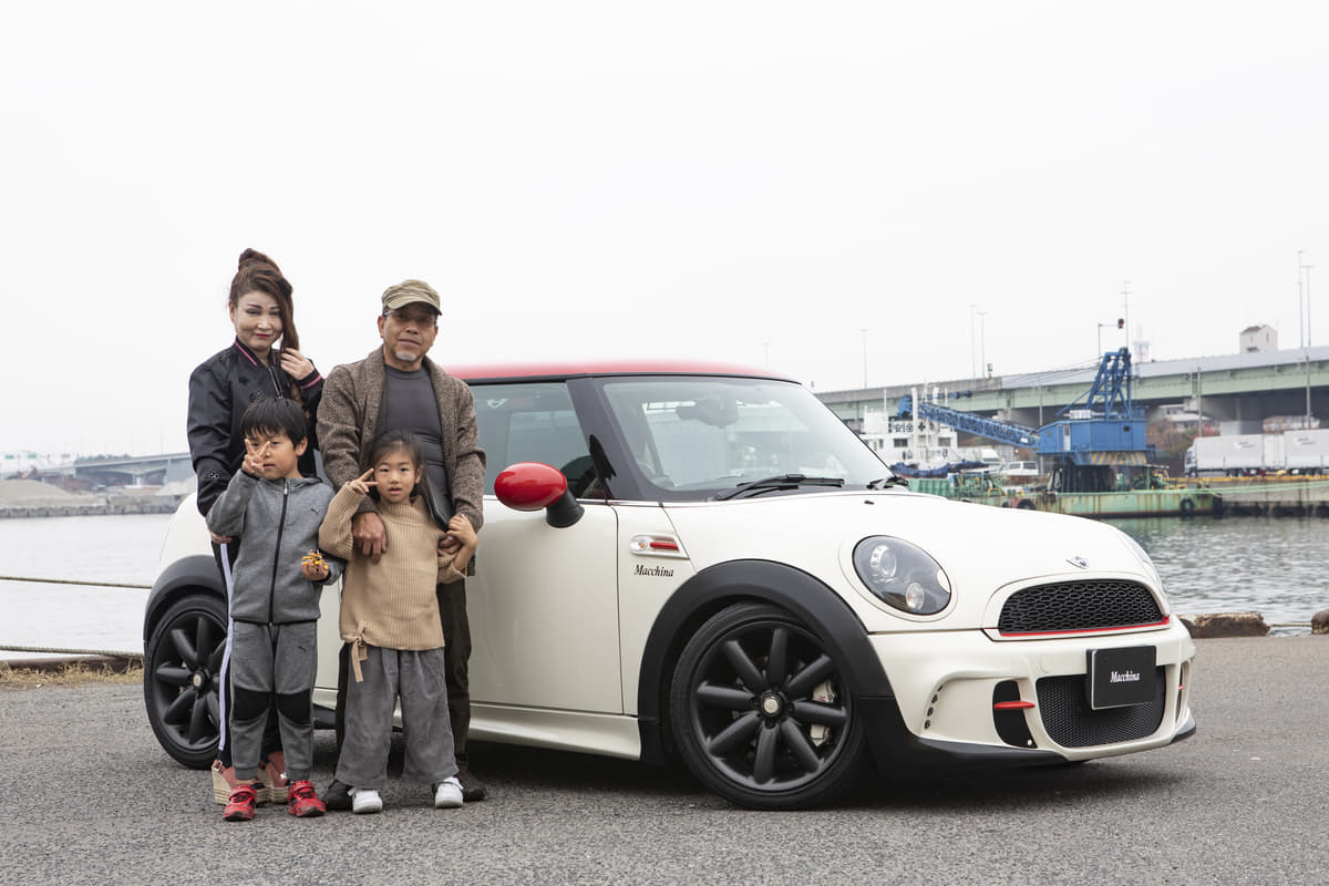 ボンネットダクトをスムージングしたJCW? なんて思ってしまうのは、赤いルーフとグリル変更のためでしょうね。ホイールの水圧転写加工やフェイスメイクも相まってなかなかスパイシーな仕上がり。ミニらしい雰囲気を演出してると思います。照美サン、風晴クン、瞹風チャンが揃ってポーズしてくれました。