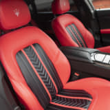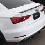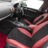 グリル、ミラー、トランクスポイラーにカーボン調水圧転写を施して引き締めたA3。ホイールのカラーリングもよくマッチしてます。インテリアもシートカバー、マット、エアコンダクトなどに赤をうまく展開していて、かなりの完成度を感じさせます。