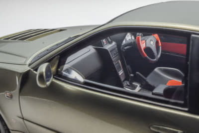 同車は、わずか20台のみの限定販売で当時は1690万円というプライスが付けられた希少モデル。専用開発のフロントバンパー、フロントブリスターフェンダー、ボンネットなどのエアロダイナミクスパーツの作り込みなども精密に再現。ドアなどの開閉機構がないため、ミニカーにありがちなチリが合わないといったこともない。