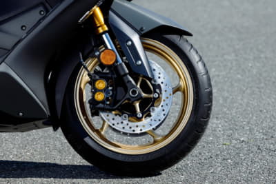 “Sophisticated MAX”をコンセプトに開発。従来のTMAX530のエンジンをベースに、エンジンサイズを維持しながら排気量を561ccにアップ。吸排気系や動弁系を見直し、体積効率を高めたことで、中高速域からの加速性能を向上させ、高速道路での余裕のあるパワフルな走りを実現した。