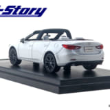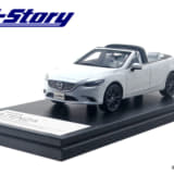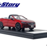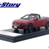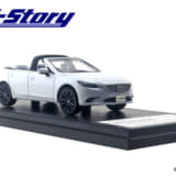 今回は少量生産ハンドメイドディスプレイモデルの「ハイ・ストーリー」シリーズでのモデル化。最大の特徴であるオートフリートップ展開状態をパーツ差し替えで実現し、さらにフォルムやインテリアも精密に再現している。レジンと合成樹脂による1/43スケールで、パッケージサイズは168mm(W)×75mm(D)×72mm(T)。マツダに商品化許諾も申請中だ。