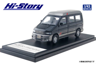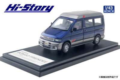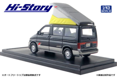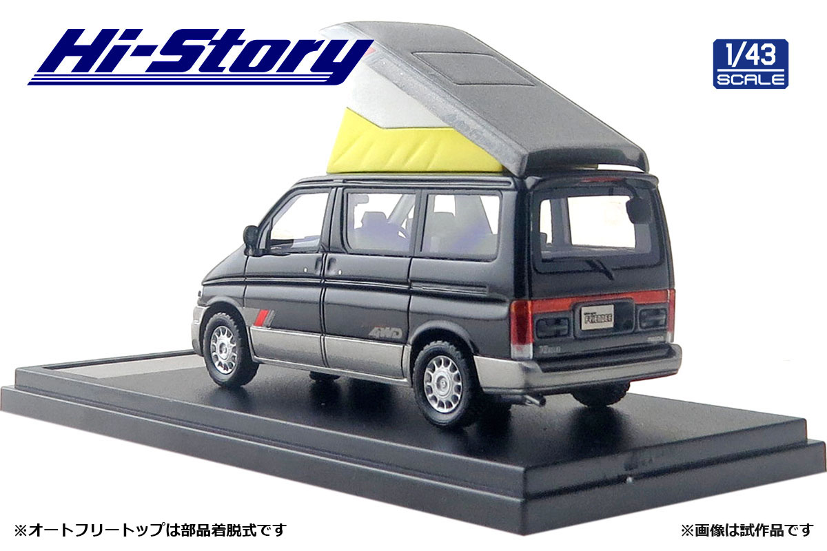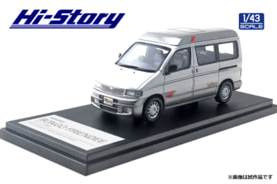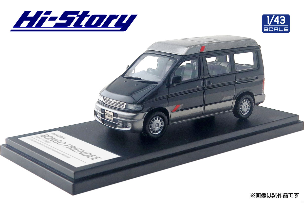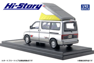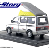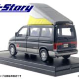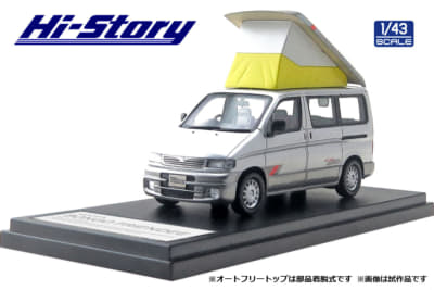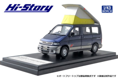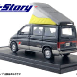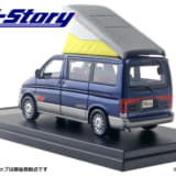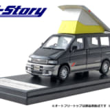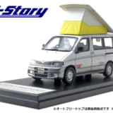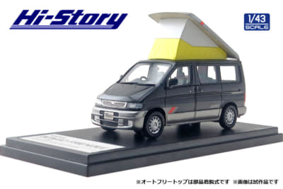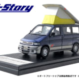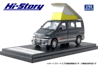 もう1台、「1/43 MAZDA BONGO FRIENDEE RF-V(1995)」は、そのデビュー当時大いに話題を呼んだボンゴフレンディのモデルカーだ。通称はフレンディと省略されて呼ばれ、キャブオーバーワゴンの3代目ボンゴとボンゴブローニィの後継モデルとして1995年に登場し、2006年に販売を終了している。ごく普通のワゴンボディのフレンディもあるが、やはり話題の中心はモデル化されたオートフリートップ(AFT)仕様だ。