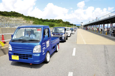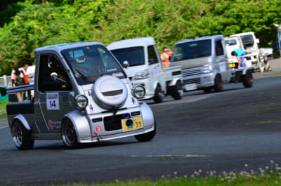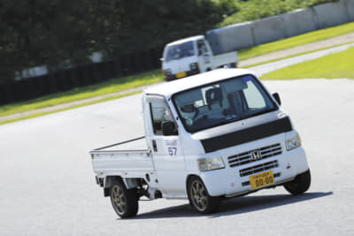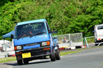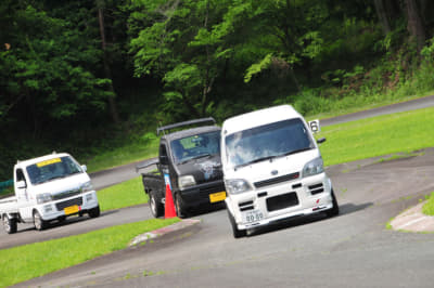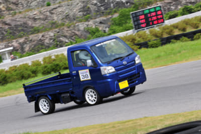 記念すべき第1回目の“軽トラ世界一決定戦”が開催されたのは2012年のこと。場所は愛知県のスパ西浦モーターパーク。翌年の2013年にも第2回が開催され、サーキットが軽トラックだけで埋め尽くされるレースに、参加者のみならず観客までもが大興奮。それまでにも軽トラをチューニングしてスポーツドライビングを楽しむユーザーは全国各地に存在していたが、十数台を超える軽トラックが、スターティンググリッドから一斉に飛び出し、チェッカーフラッグを目指してレースをする姿には、見たことのない新鮮さももちろんだが、歴史が動く予感さえした。