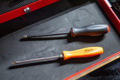 一番わかりやすいのはボルトやナットに対してのクリアランス。安いのはけっこうガタガタで、ブランド工具はピチッと合う。スナップオンなどで昔から言われる「吸い付くよう」というのはこのクリアランスの適正さにある。ドライバーも同様で、ネジの切り込みに対してしっかりと入り込んではガタはなし。