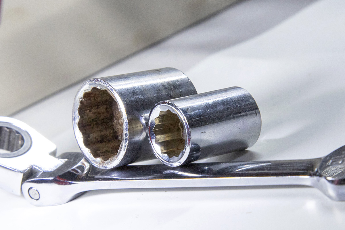 まずは基本となる素材が違って、安いものは曲がったり、折れたりすることも。実際にはスパナは口がだんだんと開いてくるし、ラチェットレンチは肝心のラチェット部分が舐めて空回りすることもある。また表面のメッキも薄くて、使っているうちに剥がれてきて、ささくれが発生。皮膚に刺さっていたかったりする。