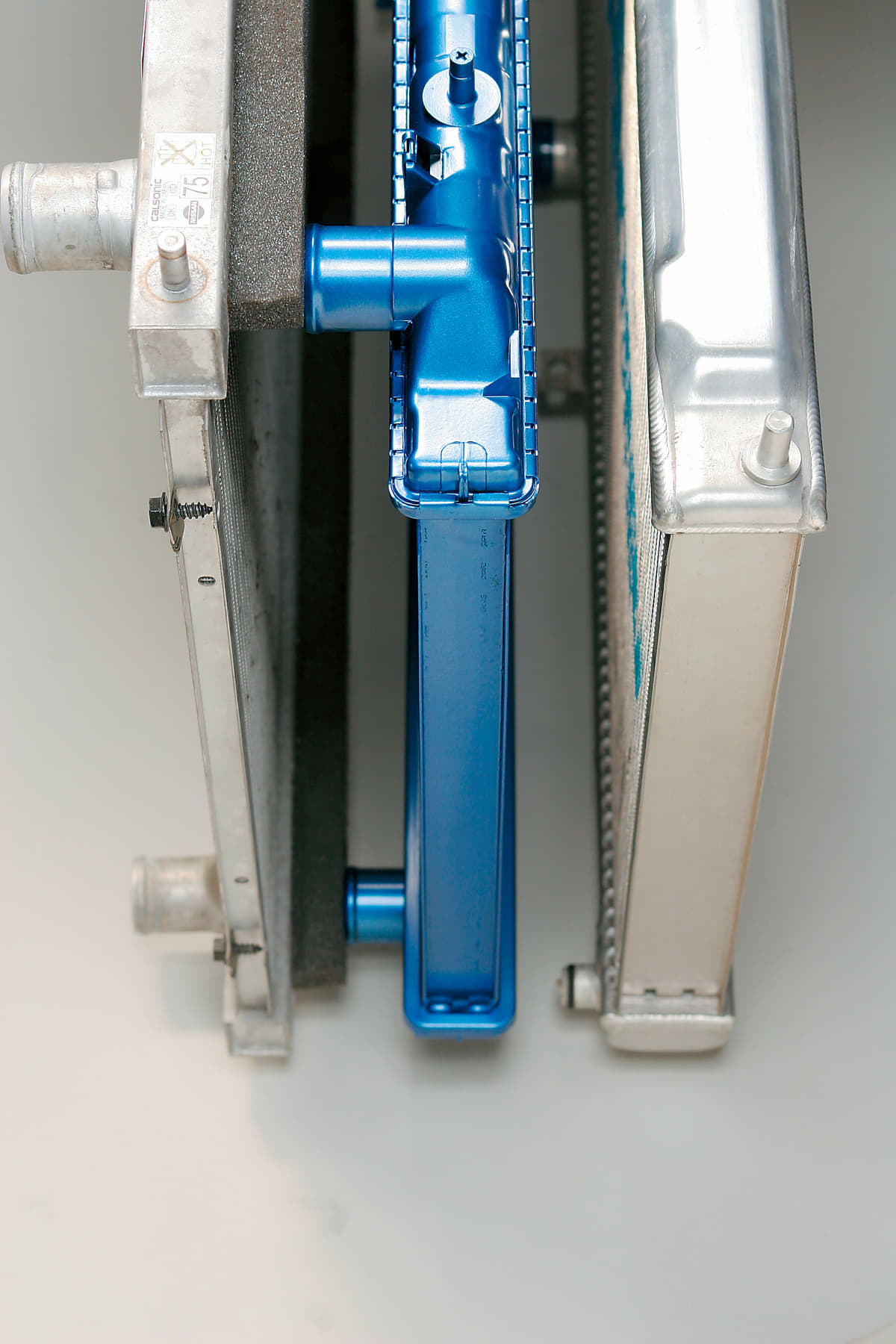 これらの対策でも間に合わなければ、いよいよラジエーター本体の交換だ。コアの厚みは2層式と3層式で材質はアルミと銅がほとんど。放熱効果は銅のほうが高いといわれているが、重量的には当然ながらアルミのほうが有利だ。しかし、コアが厚くなればラジエーター本体の重量はもちろん、クーラントの量が多くなりトータルの重量も増えるため、交換する際はどれくらいの冷却能力が必要かをよく考えよう。