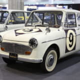 スズキ初の四輪車、そして日本初の量産軽自動車として1955年10月に発表されたスズライトSSは、359ccの空冷2サイクル2気筒エンジンをフロントに搭載。
