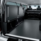 原点部分となる、専用のフラットフロアやアンカーナットが標準装備され、メーカーオプション品はもちろん、MRTオプションのベッドキットや補助バッテリーなどがたくさん用意されていて、外品による面倒なカスタマイズいらず。仕事でも遊びでも、ユーザーのニーズに合わせたハイエースがつくれるというワケだ。