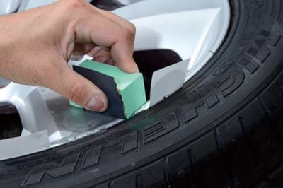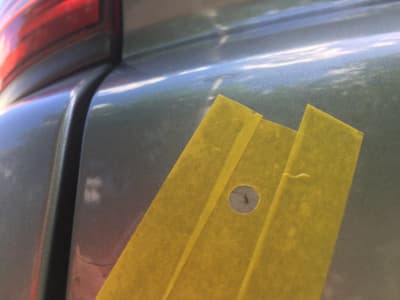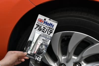 そこで使いたいのがDIY向けのボディ補修材でおなじみの「武蔵ホルト」や「ソフト99」が発売している飛び石用の小さい丸い穴が開いたマスキングテープなどで、これを使うとキレイに丸く塗れるので補修後の見栄えがいい。これにさらにタッチアップペイントの塗料と元の塗装面との段差を耐水ペーパー→コンパウンドの順にならしていくとよりキレイに仕上がる。