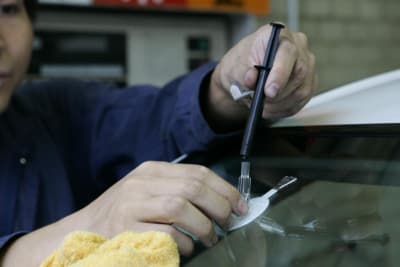 さて、ガラスに受けた飛び石傷だが、これは安全な走行を妨げることにつながるレベルの損傷であって、ガラスのセンターより運転席側に付いた傷があると傷の大小に関わらず車検には通らないというほど厳しく見られるところ。それだけに傷の状態によっては業者でも作業NGとするケースも多いので、この部分の修理はそもそもDIY向けとは言えないのだ。