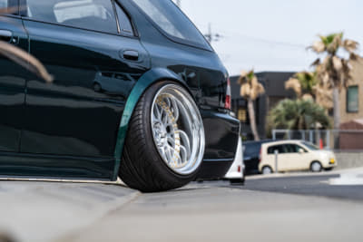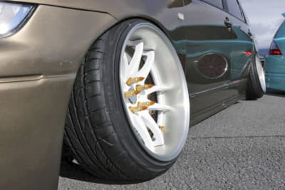 カスタム度合いがハードなローダウン車両で定番なのが、キャンバーを効かせる、いわゆるタイヤを“ハの字”にするカスタム。理由はより太いホイールを履けたり、後から見たときにクルマ全体が台形に見えてカッコイイから。ただしそのキャンバーも、角度によっては大変なことになる。