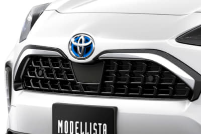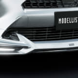 モデリスタはエアロパーツの他に「チョイ足し」メッキアイテムをラインアップ。「フロントグリルガーニッシュ」は、アッパーグリル左右に配置することで台形のグリルを強調。