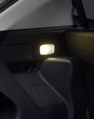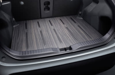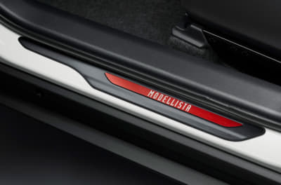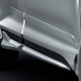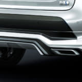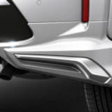 フロントからリヤへと流れるように、キレのある造形でつなぎ、低重心感のあるフォルムを演出。ブラック部分に浮き上がるようなシャープな造形が疾走感のあるダイナミックな印象を高める。フロントスポイラー、サイドスカートと勢いのあるラインをボディ後方まで繋ぐデザインを採用。L字形状の金属加飾を施し、ワイドだが軽快感のあるリヤフォルムに高品質感の演出する。