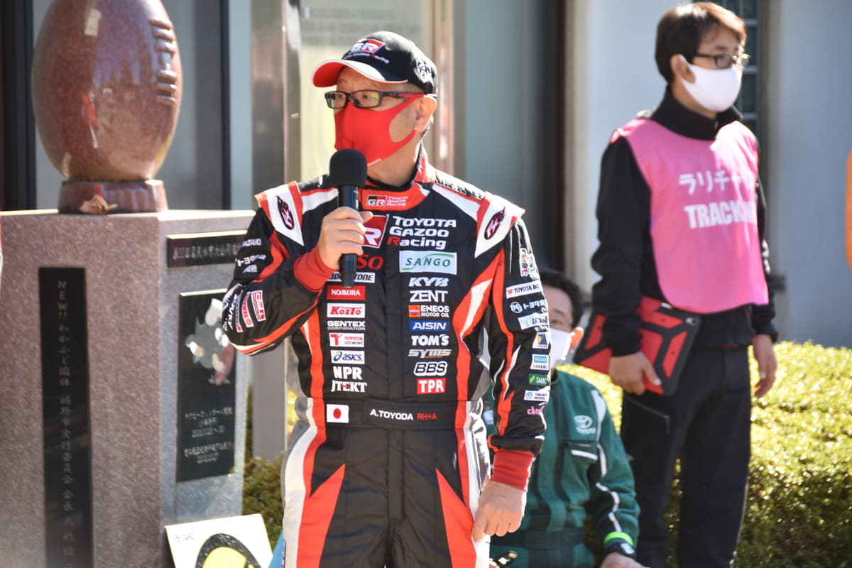 早朝のレキ、そして会場となる裾野市運動公園内に設置された「SPORT」、林道を使用する「ORANGE」、「GREEN」のSSをそれぞれ2回ずつ走行する全6ステージで構成されていた。ちなみにSSはトータル15.96kmで、そう移動距離は68.94kmである。今回も、奴田原文雄選手や新井大輝選手など国内トップラリーストも参戦(もちろん、ドライバーとしてではなく、コ・ドライバーとして)。またモリゾウ選手も参戦している。