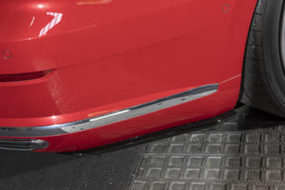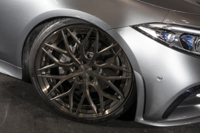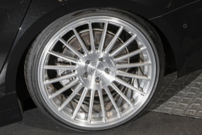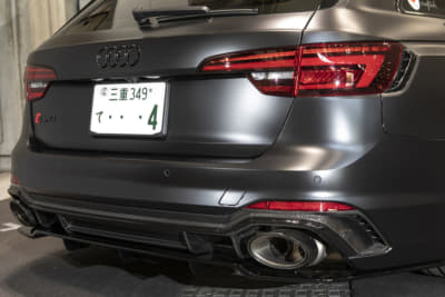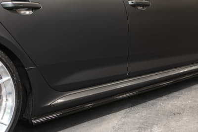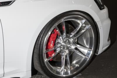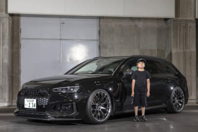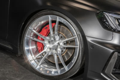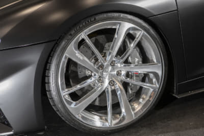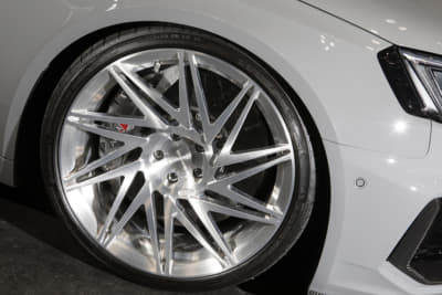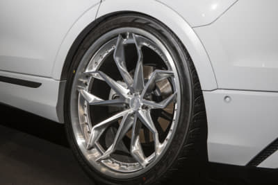 純正21インチを、いっ気に巨大な24インチ履きへ。ベントレー用のマフラーエンドはフランジを作ってのボルト留め、グロスブラック塗装とカーボンシートによるラッピングより顔面とテールをブラック化。コテコテ感無く仕上げたのがポイントです。次はRS Q8用のフェンダーアーチらしいです。