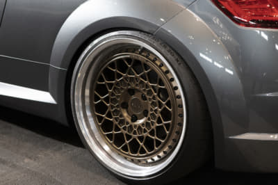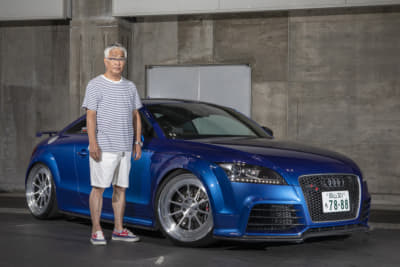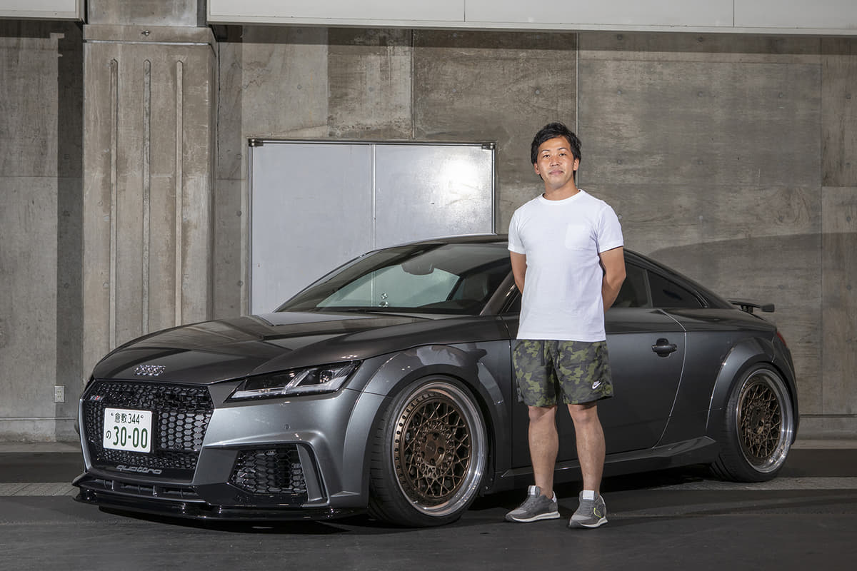 以前はRS5に乗っていて、「もう少しスポーツ寄りのクルマが乗りたい」とこの左ハンドルのTTに乗り換えたオーナー。ドライブは「めっちゃ楽しい」とのこと。コダワリのホイールは、本来裏打ちされているピアスボルトを表面に見えるように設定、ダークブロンズカラー含めてかなりお気に入りでした!