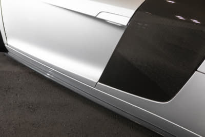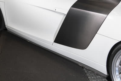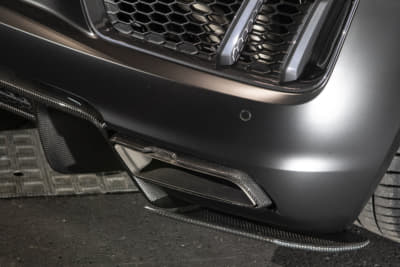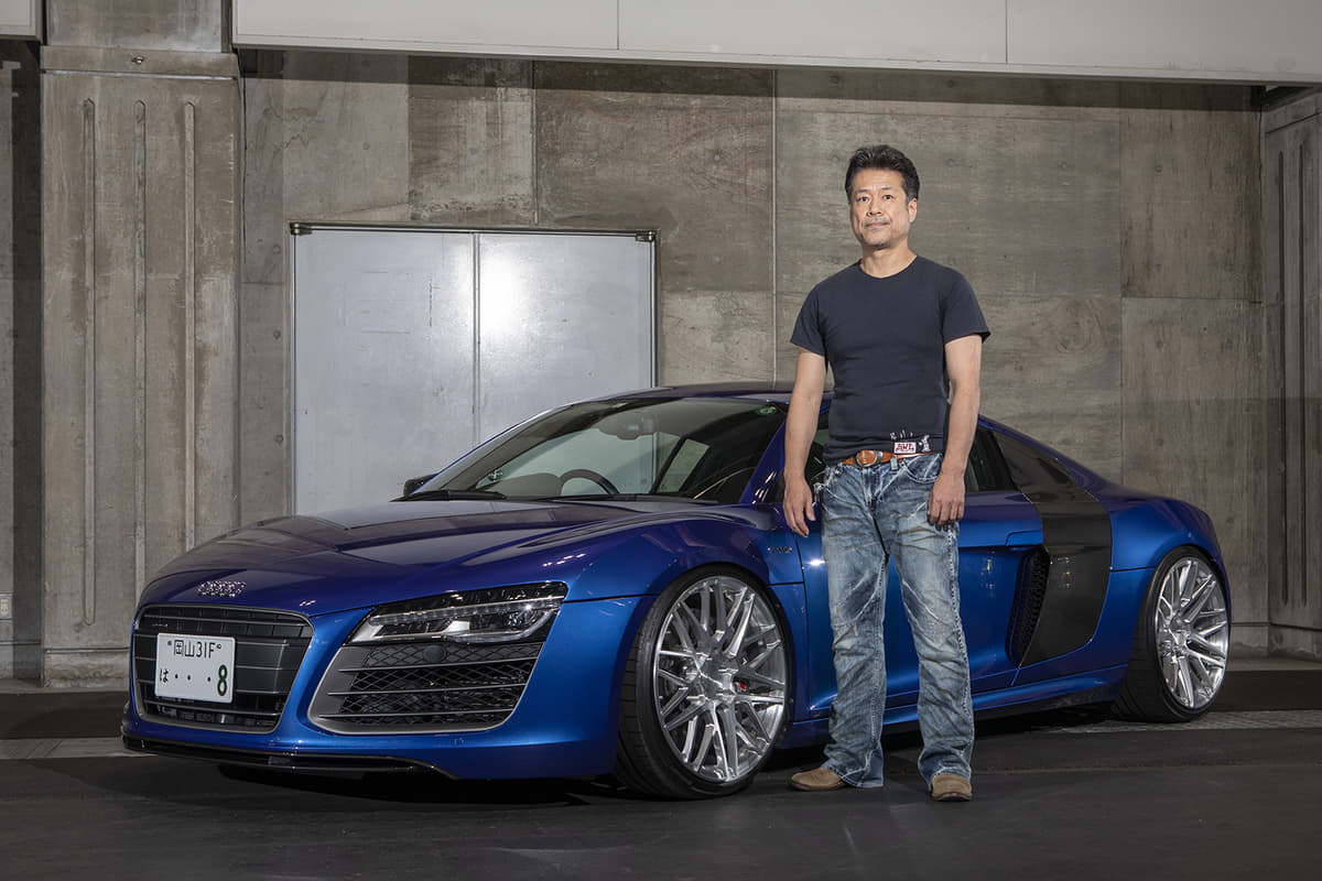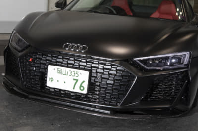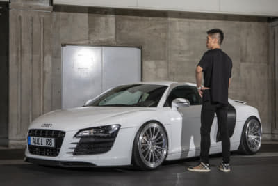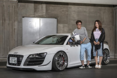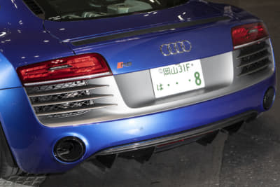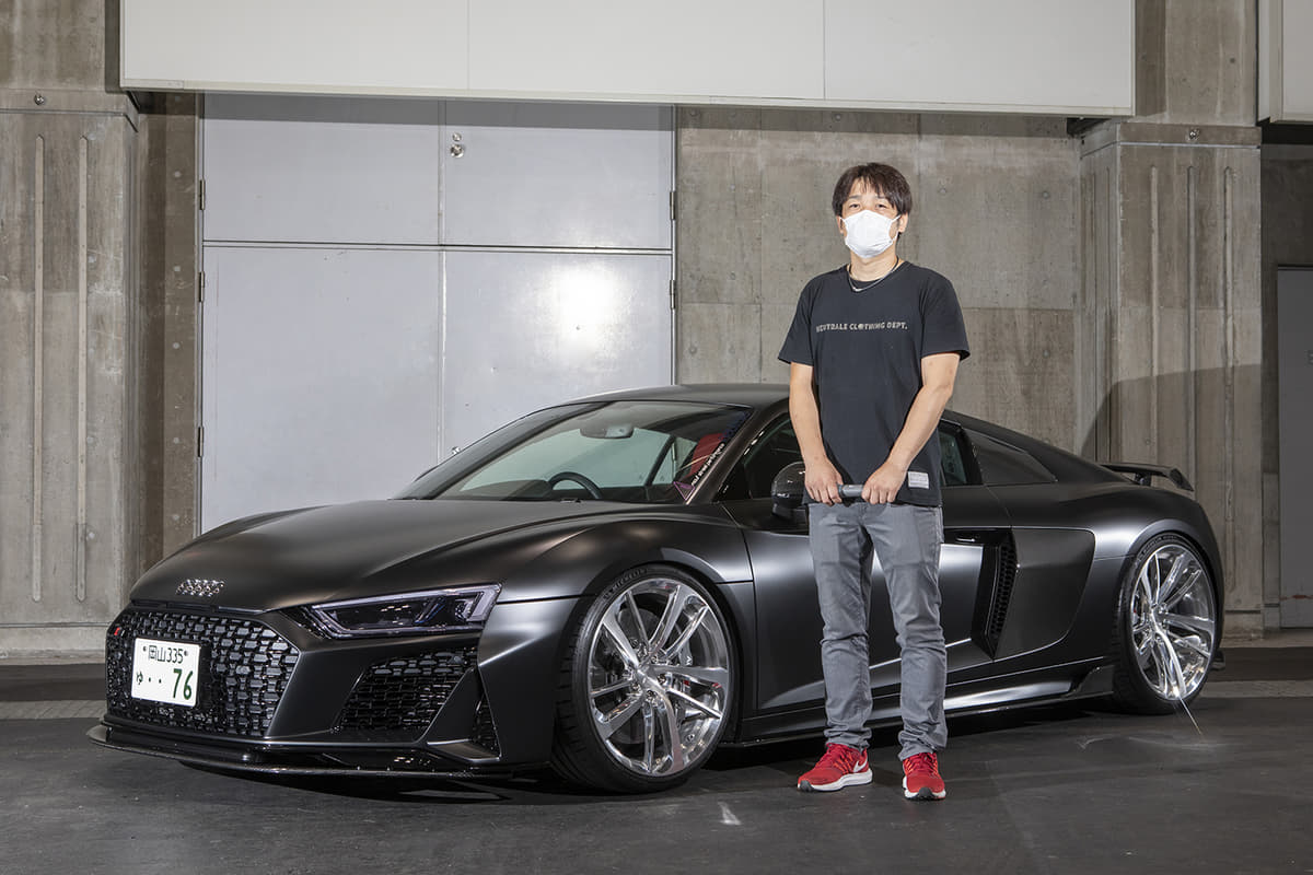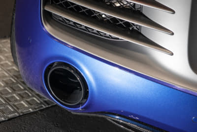 スーパーカー世代のオーナーは、フェラーリでもランボでも無く「このR8なら買えるかも」と購入。ベース車のV10プラスはミラーやディフューザーがカーボン仕様で、純正でバケットシートが入っているレア車とか。マフラーのファブスピードはステンレス製で音も「純正とは全然違う!」とお気に入り!