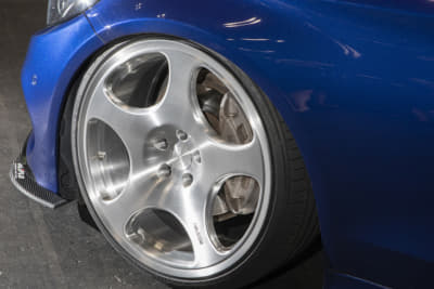エアロ関係は「サイド以外はハデな純正のスタイル。だから弱々しいサイドにだけスポイラーを装着しました」と、確かにこのサイドがあるとだいぶボリュームアップして全体のバランスが取れてイメージが変わりますね! これまでは「割りそうで付けなかった」というリップが次の目標らしいです。