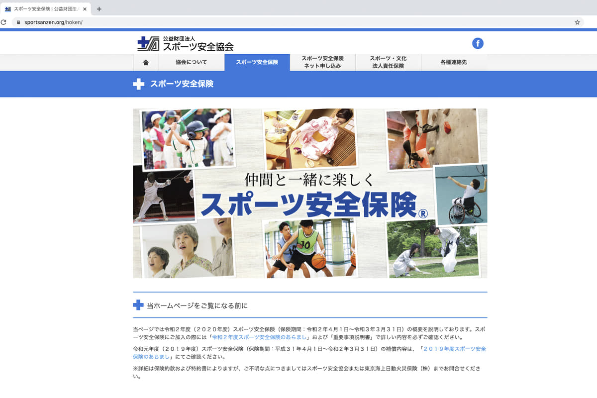 そこで注目したいのが、公益財団法人・スポーツ安全協会の『スポーツ安全保険』。4名~のアマチュア団体およびグループが対象で、スポーツに限らず文化活動やボランティアの団体も加入が可能。入院や後遺障害に対して使われる『傷害保険』は当然として、他人にケガを壊したり他人のモノを壊したことで、法律上の損害賠償責任が発生した際の補償や、突然死における葬祭費用を負担してくれる。