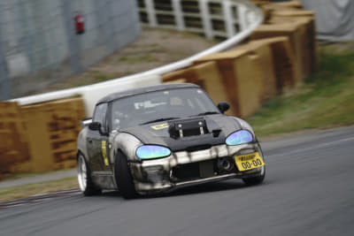 その筆頭が、「コペン専門店 も。ファク」の880型式のコペン。各地のサーキットで軽自動車のレコードタイムを叩き出す、完全なる超スペシャルタイムアタック専用マシン。クラッチを切らずにシフトアップできる海外製のドグミッションが装備されていたり、いわゆる“NOS”、ニトロガス噴射まで仕込まれた、推定280馬力仕様。前評判どおり、今回のTC2000でも、軽自動車初の“1分切り”に期待がかかったが、大記録達成には惜しくも 約0.8秒 届かずの 1分00秒791 を樹立。とは言え驚異的なタイムには違いない。R35 GT-Rニスモとほぼ変わらないタイムをコペンが出したことを、ぜひとも、冷静に認識していただきたい。
