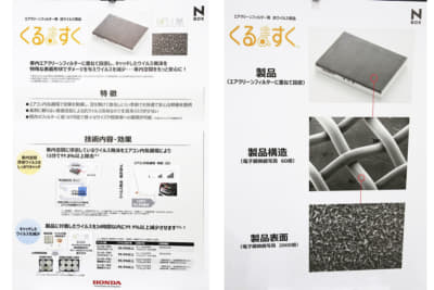 ところで、これに際して純正用品で注目を集めたのが「くるますく」と名付けられた抗ウィルス用品だ。空調のフィルターにかぶせることで、車内のウィルスを減少させる。その効果は内気循環で空調を利用し、15分で99.8%のウィルス飛沫を除去することができるという。くるますくに付着したウィルスは、24時間で99.9%以上減少させる能力を備える。新型コロナウィルスの影響がまだ続く今日、一躍注目されるホンダ純正用品となった。