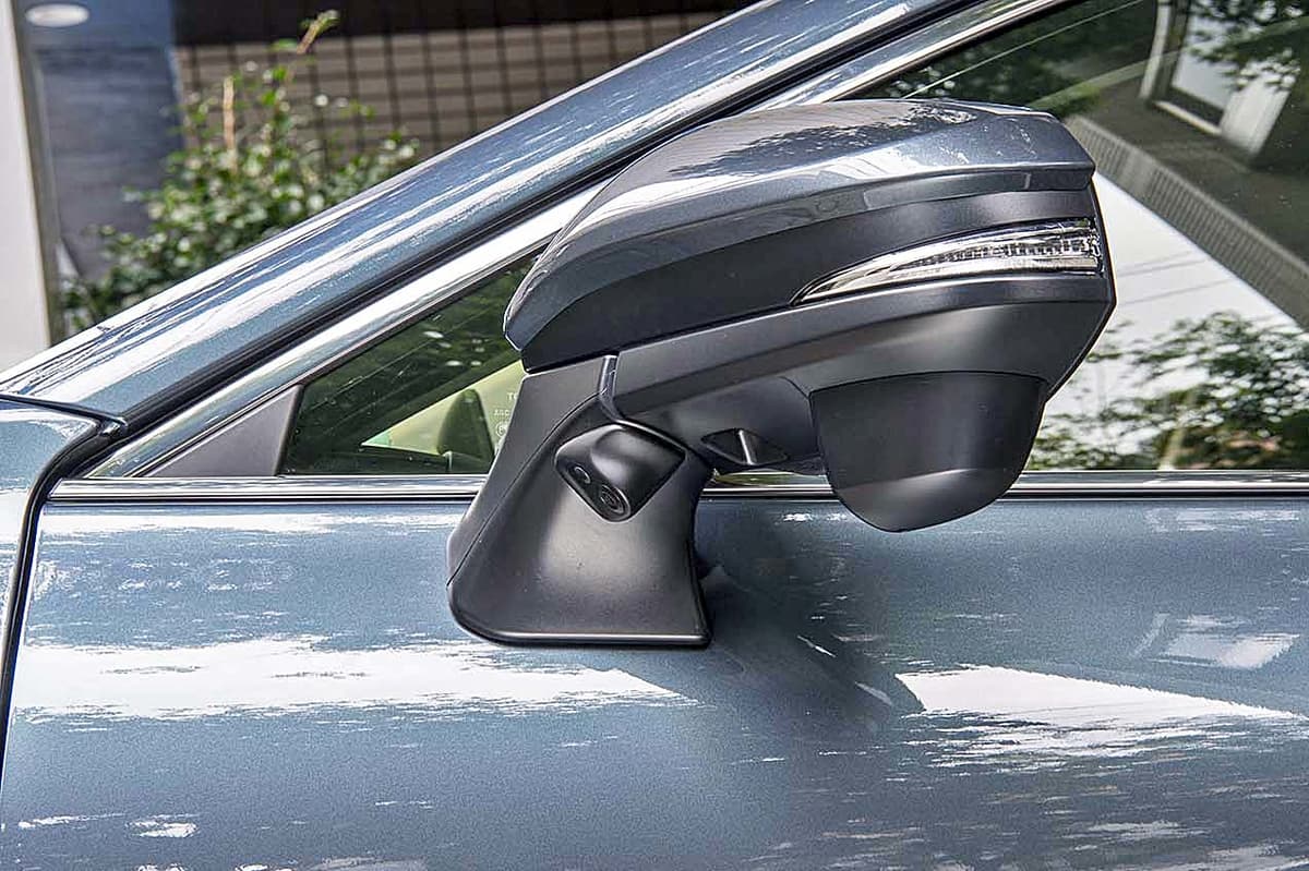 また製品はハリアーの左サイドミラーのベース部分に取り付けるタイプなので、ミラー本体が折り畳まれた状態であってもカメラ映像をそのまま見ることができるのは嬉しい。