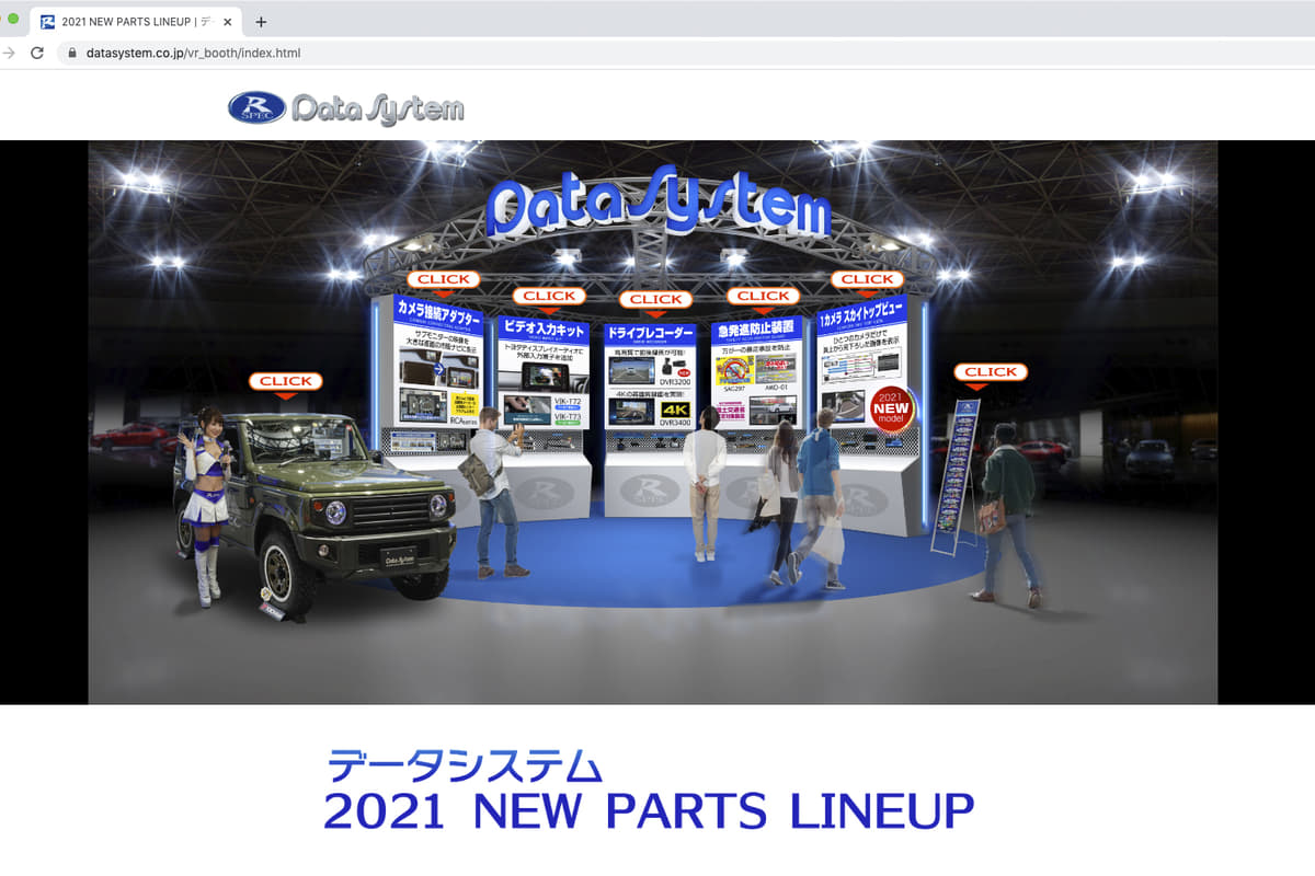 自動車アフターパーツ総合メーカーの株式会社データシステムは、自社webサイトにおいてバーチャルブースを公開した。東京オートサロンや大阪オートメッセなど年初のアフターパーツイベントが相次いで中止になるという状況下で、今年デビュー予定の1つのカメラで俯瞰した画像が表示される画期的な「1カメラスカイトップビュー」や、コンパクト設計なうえに前/後の運転シーンを高画質で同時に録画できる「2カメラドライブレコーダー」などの新ラインナップをブースに見立てて紹介。