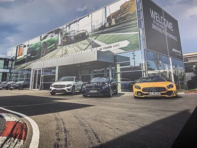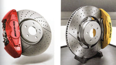 メルセデス・ベンツ標準車との違いで代表的な特徴のひとつとして、サーキットを走れるほどのハイパフォーマンス仕様であることが挙げられる。走行性能やデザインの面でも、大きく差があるメルセデスAMG。標準車をチューンしたハイスペックエンジンとスポット増しなどで強化した車体や専用の高性能A/T、サスペンションが組み込まれ、サーキット走行で高いパフォーマンスを発揮できるようにセッティングされている。標準車よりもハードな乗り味のクルマに仕立て上げられ、一味違った乗り心地やエンターテイメントを楽しめる事もAMGの大きな特徴だ。エンジン性能を受け止めるパーツとして、強化ブレーキシステムやAMGスポーツサスペンションも装備。