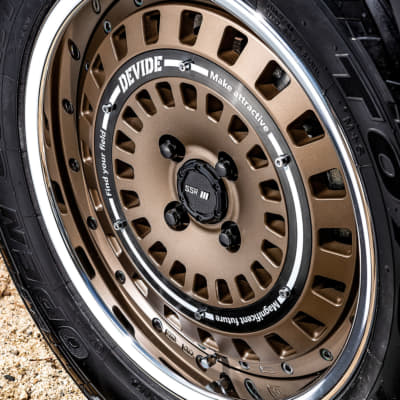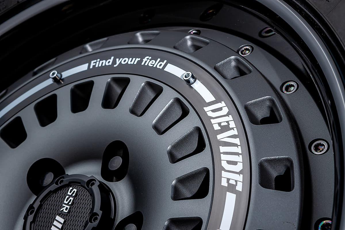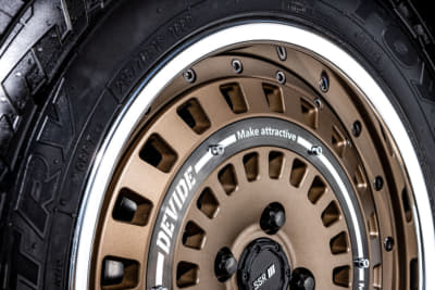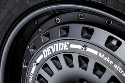 そんなデバイドがターゲットとするのはSUV。それもゴリゴリの悪路走破系ではなく、あくまでもファッションの一部としてアップスタイルを楽しむためのギアであることがそのコダワリだ。「ちょっとアゲて太いタイヤを履き、それに似合うホイールで、クールにオシャレを楽しみたい」そんな街オフ的な遊び方に、デバイドのアイテムはジャストなのだ。