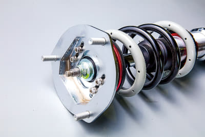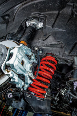 静粛性に優れた大容量ベアリングとスラストシート、異音の発生を抑えて衝撃も緩和してくれる専用ゴムアッパーマウント、緩みにくいテーパー型ブラケットロックなども採用。超軽量でヘタリにも強いタナベ自慢の自社製スプリング「プロ210」が組み合わされ、アップ量やスプリングレートなどのすべてが車種専用セッティングとなっている。