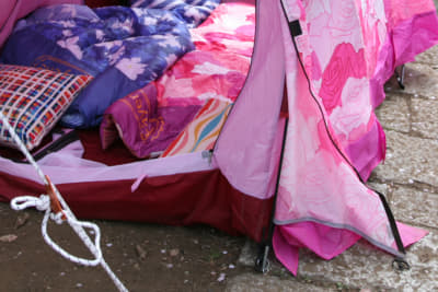また靴の脱ぎ履きのときにテント内に雪を蹴りいれやすいので、テントの出入り口外側にすのこを置いて雪が入りにくくする、小さなベンチを置いて座って脱ぎ履きできるようにするなど工夫が必要だ。靴が入る幅だけ出入り口の雪を少し掘っておくのも有効。