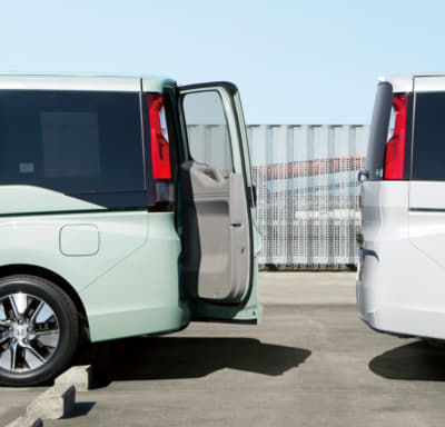 ここで日産セレナが「国産ミニバン初の両側スライドドアを備えたモデル」と聞いて、「あれ? 1996年デビューのステップワゴンじゃないの?」と、思った方がいるかもしれないが、じつは初代と2代目(2001年〜)までは両側スライドドアは持っていなかった。そう、車体左側(歩道側)のみにリヤスライドドアが設けられ、車体右側はフロントドアだけだったのである