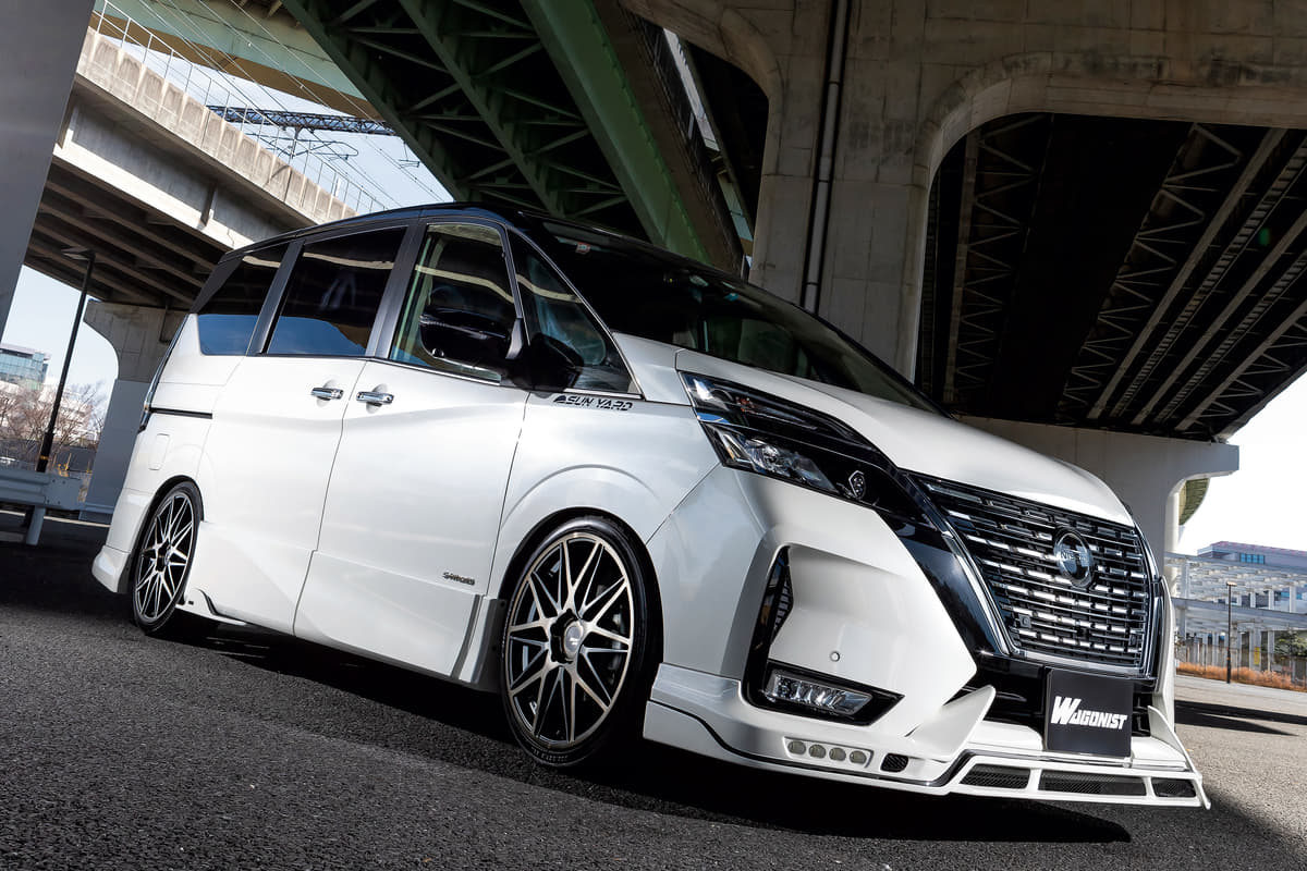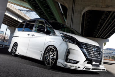 例えばセレナのようにハイインセットなMクラスミニバンでは、装着した際の奥行き感を確保するのが難解。それを解消するため、斜めから見たときのフェイスの奥行き感が際立つよう、立体的なダブルフェイス構造となっているのがブリッカー01Mのポイントだ。