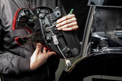 このキットを考案したのは、LED関連のドレスアップパーツを多数ラインアップするヴァレンティジャパン。まずテールまわりの後期化を実現させる部品として、後期型テールランプ本体と専用ハーネス、そしてガーニッシュやエンブレム類が必用になる。では早速、テールまわりの後期化を実現させるそれぞれのパートを細かく分けて見ていきたい。