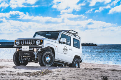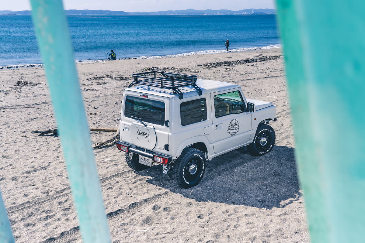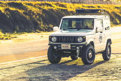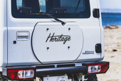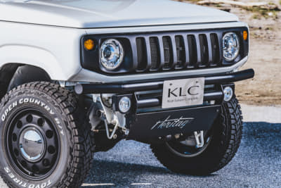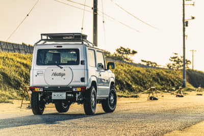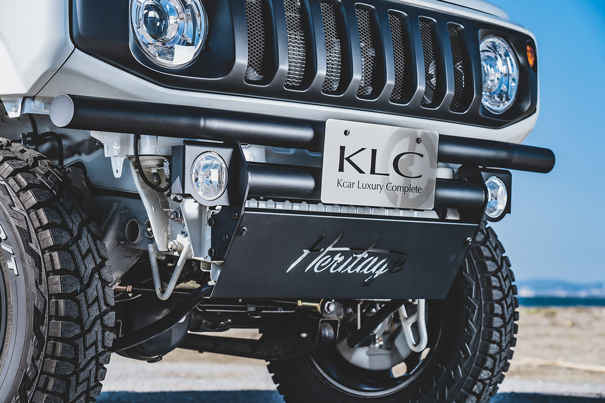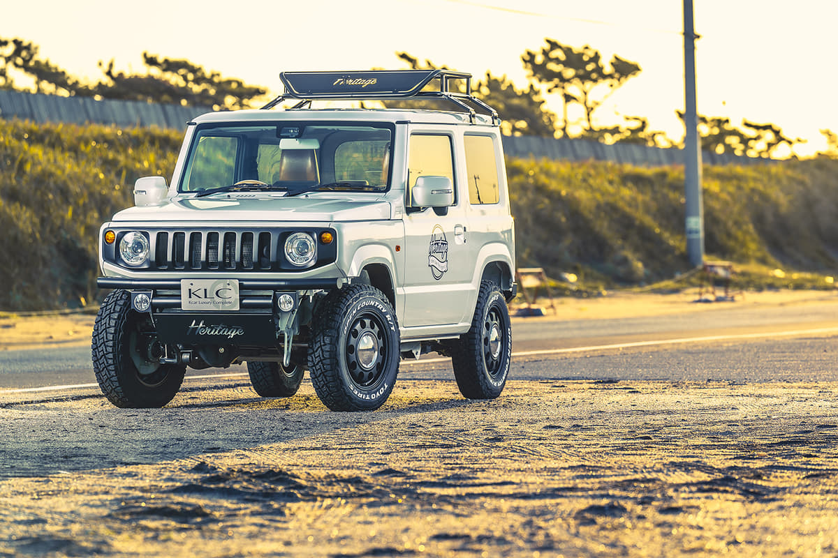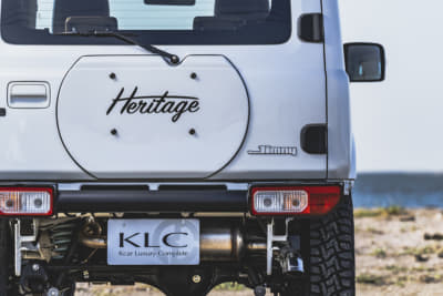 エアロメーカーのKLCがジムニー専用に立ち上げたブランド「ヘリテージ」。エアロから内装アイテムまで幅広くラインナップを揃え、その組み合わせ方次第で、全く異なるイメージに仕立て上げるその手法は、既に多くのジムニーファンを魅了している。