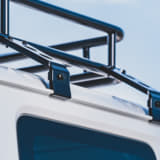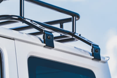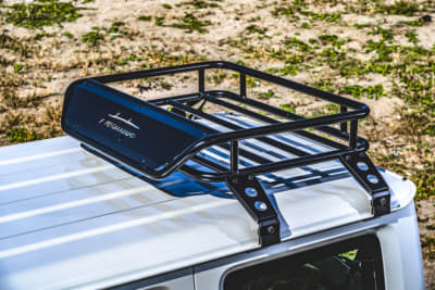アルミ製のルーフラックは、プレートの付かないシンプルなタイプB。黒とアイボリーの2色展開なので、今回はもちろんバンパーに合わせたアイボリーをセレクトし、統一感を出す。