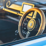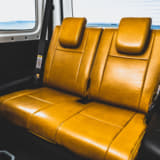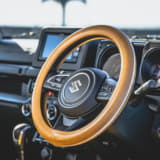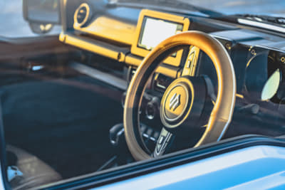 グリルはノスタルジックなデザインの「#フェイスグリル#フォーティー」を採用し、ホワイトでペイント。中央に大きな「SUZUKI」エンブレムをセットすれば、なんとも味わい深い顔付きに。 ちなみにグリルをアイボリーにしなかったのは、「バンパーとルーフラック、ホイールをアイボリーで揃えたので、ここもアイボリーにするとしつこくなりすぎる。だからグリルとミラーはホワイトで塗り分けています」。