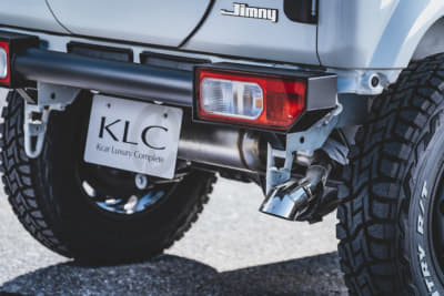 リアバンパーはあえて純正テールランプを流用。また、この手のスタイルではナンバープレートをゲート側に移設するのが定番なのだが、「それをするとナンバー灯の配線のために、ゲートに穴を開ける必要が出てくるんです。せっかくの新車に穴を開けるのをためらう人も多いのでは」との配慮から、バンパーにナンバーを設置。 純正ナンバー灯がそのまま使えるので、余計な加工の必要はないし、テールランプもナンバー灯も購入せず、最低限のアイテムでスタイルアップが出来るのが嬉しい。加えて、純正バックカメラ用のステーも付属。純正機能を損なわない工夫が随所に光る。