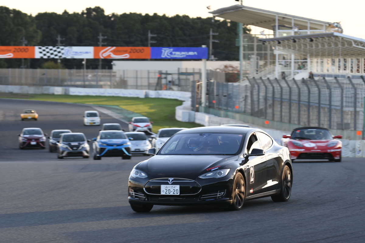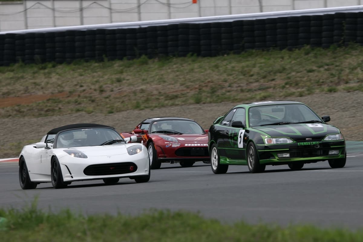 このEVだけのレースシリーズは、当初はレース距離50kmでスタート(現在はレース距離40km~65kmで行なわれている)。2010年の初戦には国内に並行輸入されたテスラ・ロードスター2台が参戦。テスラ・ロードスターのモーターは空冷式だったため、レースではバッテリーの残量よりもモーターの熱対策のほうが重要だった。そのためモーターに負荷をかけないよう走行ペースを抑え、セーブモードの介入をいかに防ぐかが勝負の決め手となった。