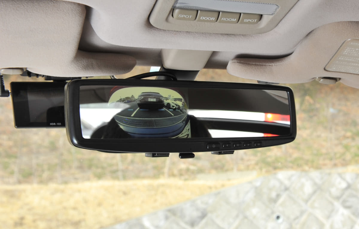 まずはインテリアの小物から。視認性が向上するワイドなルームミラーは昔から人気が高く、近年ではバックカメラ付きなどのモデルも増えている。多くの製品は純正ミラーの上に被せて装着するが、サーキットのクラッシュで大きな力が加わったとき、外れて車内を飛び跳ねる可能性があるのだ。そのため走行会では必ず外すよう指示されるケースがほとんど。