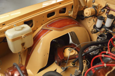 レストアと同時にカスタム(メタルワーク)をしたいところだが、それはあえてしないという判断。「外装はオリジナルを残して、違うところで差をつけたかった」と、エンブレムとフェンダーミラーの穴を埋め程度に抑えている。