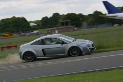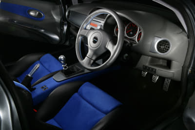 軽自動車のシャーシに最高出力345hp、最大トルク575N・mを誇るプロドライブチューンのEJ20ターボ。重量はわずか1100kg、パワーウエイトレシオは350bhp/tonで、0-100km加速が3.8秒、最高速度は280km/hを誇っていた。