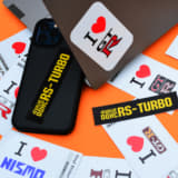 最後は「RS-TURBO」ステッカー。こちらは見てわかるように、スカイライン ハードトップ 2000 ターボRS」の車体側面に描かれた「4VALVE DOHC RS-TURBO」の文字をデザインしたステッカー。スマホの背面にぴったりの110×26mmサイズで、貼った瞬間から4VALVEの鼓動が聞こえてくるかも!?