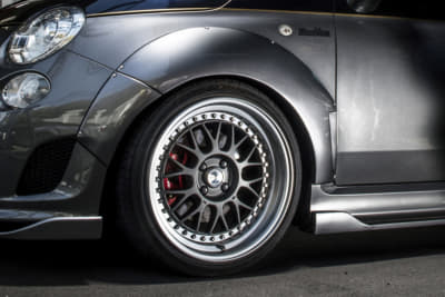 また太田代表がワークにオーダーしたのはP.C.Dだけじゃない。マルチピースのメリットを活かしてインセットにもとことんこだわった。ワークによると「輸入車に限らず太田サンからのホイールのオーダーは同じクルマであっても足まわりの仕様や車高、そしてタイヤの引っ張り具合によってインセットが微妙に違うんですよ。だから、マッキナのローダウンさせたクルマはフェンダー内にホイールが綺麗に収まっていますよね」。