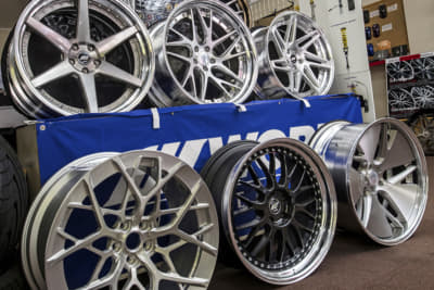 独創的なカスタマイズでユーザーを刺激する同店がオープンしたのは11年前。今では国産車と輸入車の割合がほぼ同じという車種を問わない幅広いユーザーで賑わっているが、その華麗にカスタマイズしたクルマの足元を彩っているホイールの多くがワークだ。
